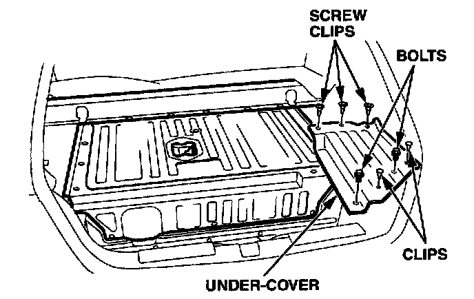 8. Remove the under-cover (two bolts, two clips, and three screw clips).