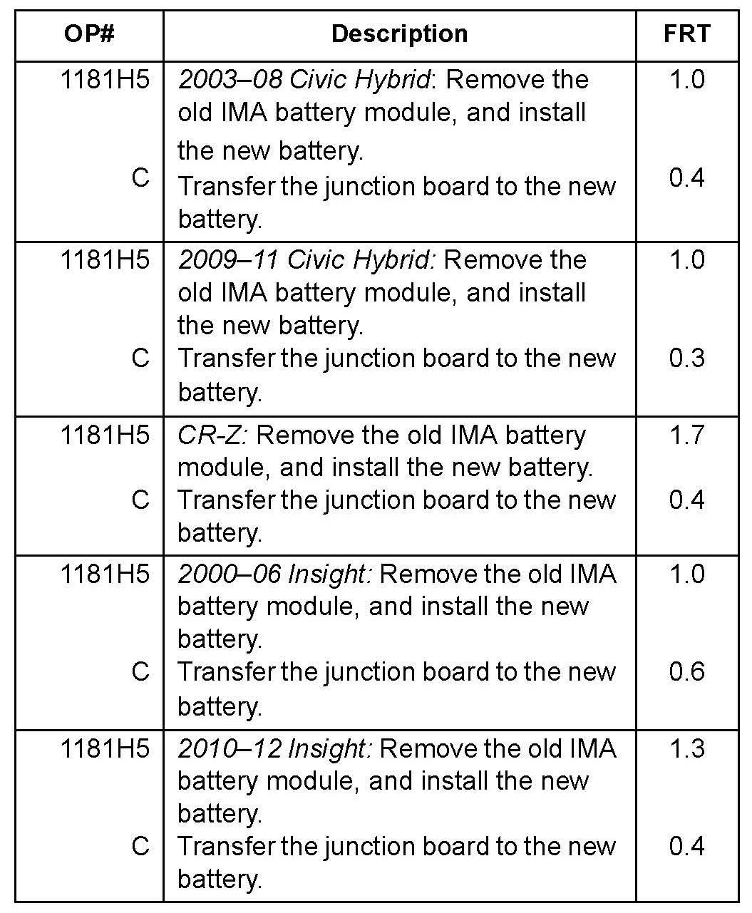 American Honda is no longer shipping IMA replacement batteries with junction boards attached. The junction board will now need to be removed from the old IMA battery and installed onto the new battery before the battery is installed into the vehicle.