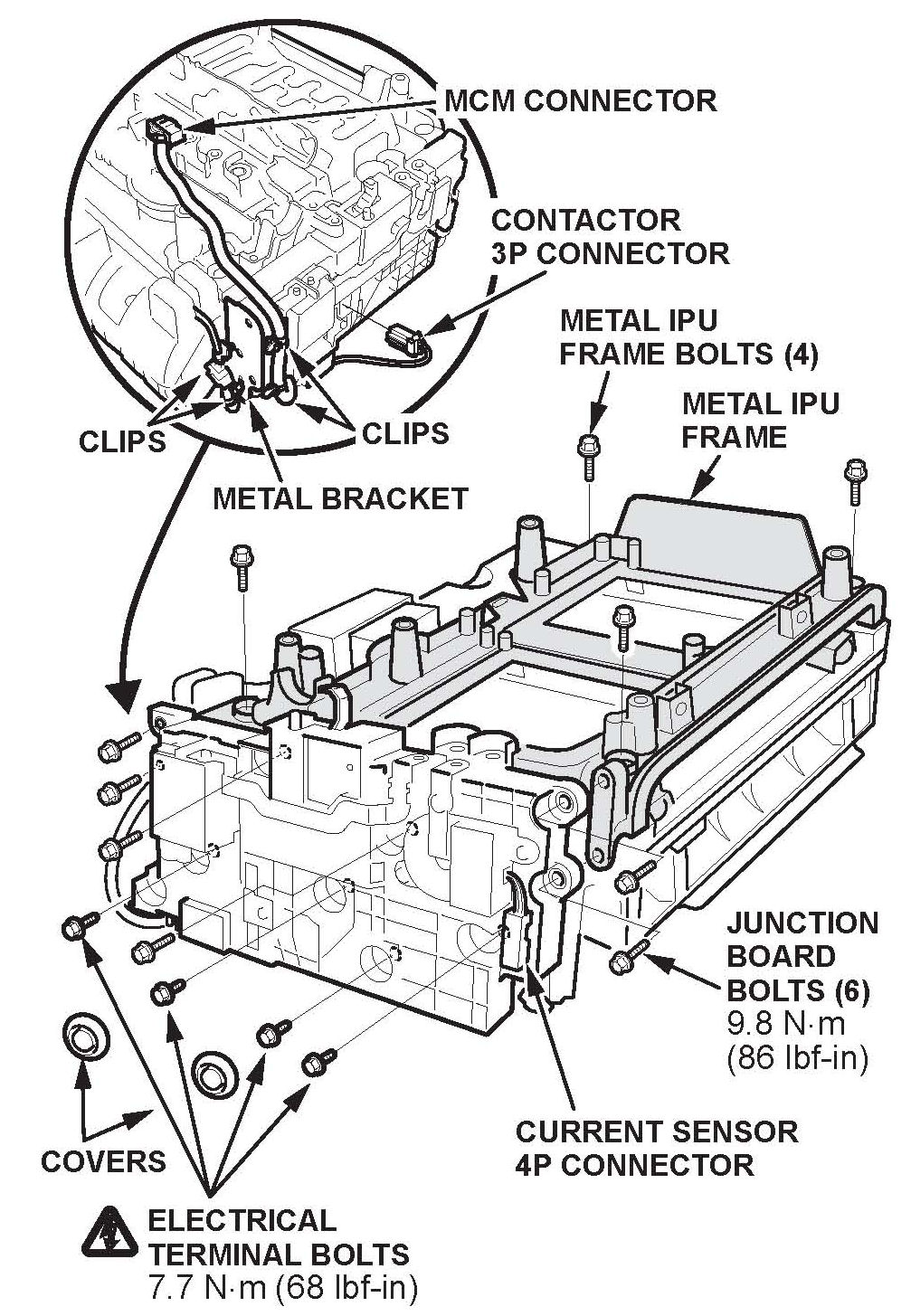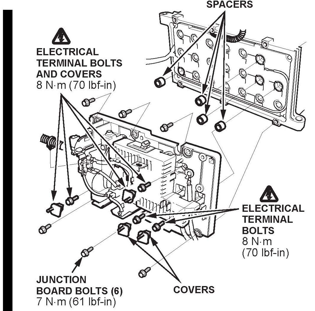 10. Install the junction board bolts, and torque them to 9.8 N.m (86 lbf-in).