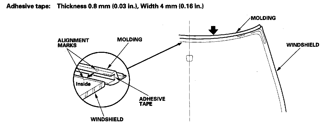 - Be sure the alignment marks on the molding lines up with the alignment marks on the windshield.