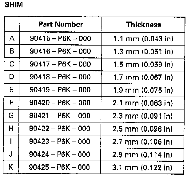 If the clearance value is less than specification, calculate the thickness of the new shim as described below.