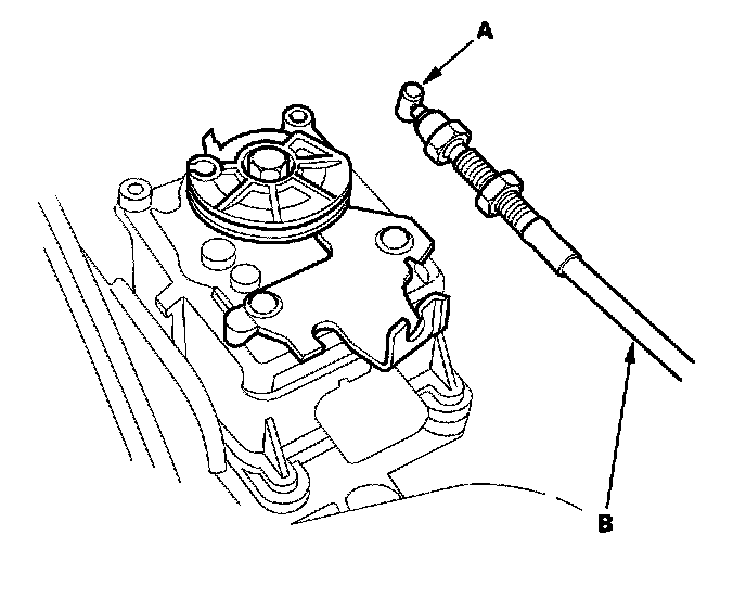 2. Disconnect the actuator cable end (A), and remove the cable (B) from the cruise control actuator.