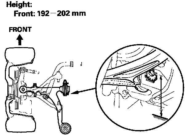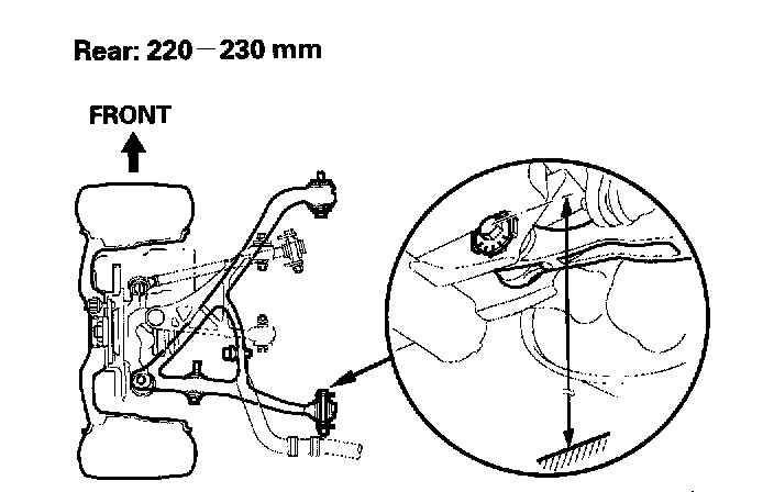 7. Check the height of each suspension. Make sure the vehicle is empty, is parked on a level surface, and has properly inflated tires (the tread wear indicator must not be showing). If the height is out of specification, adjust the load as necessary.
