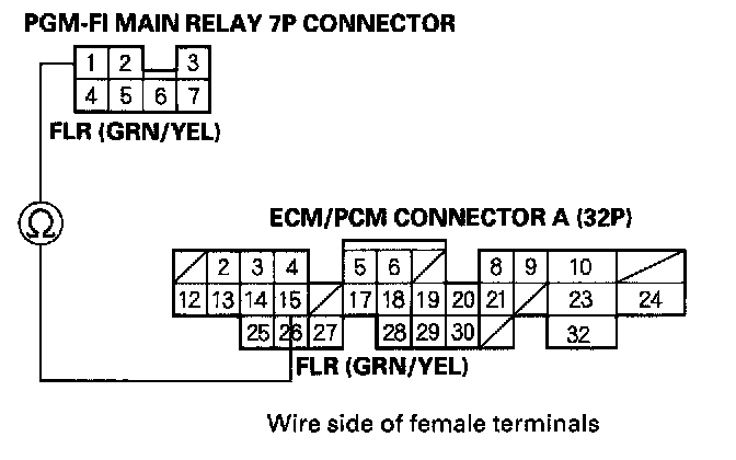 2. Check for continuity between body ground and PGM-FI main relay 7P connector terminal No.3.