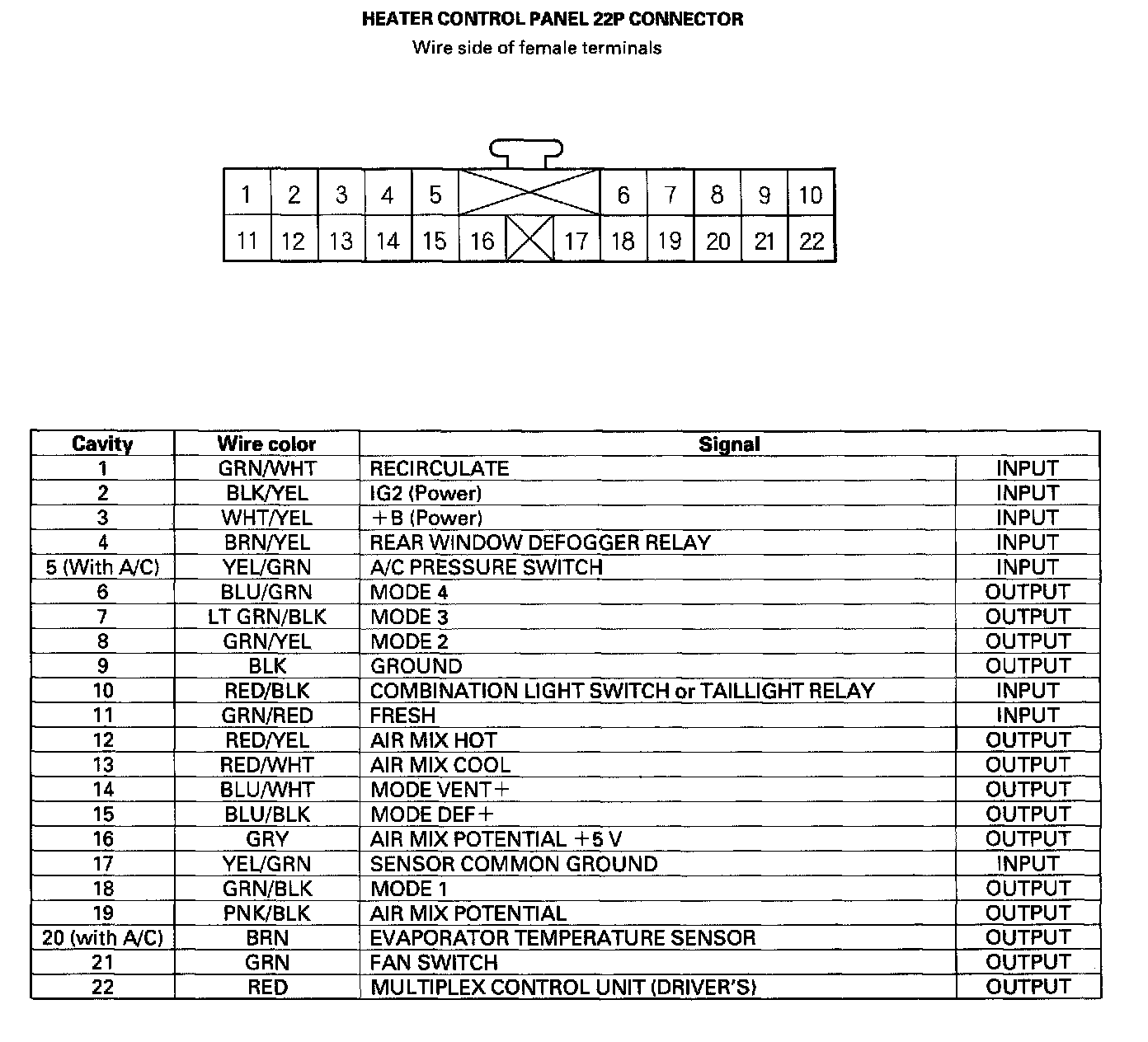 Heater Control Panel Inputs And Outputs 22P Connector: