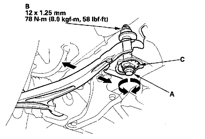 3. Turn the adjusting cam collar (C) until the caster is correct.