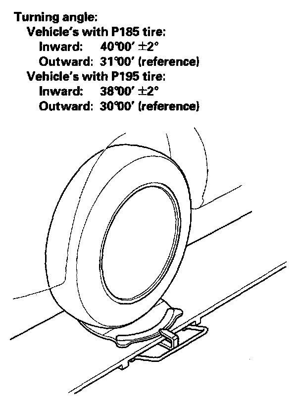 2. Check the toe. If it is correct, but the turning angle is not within the specification, check for bent or damaged suspension components.