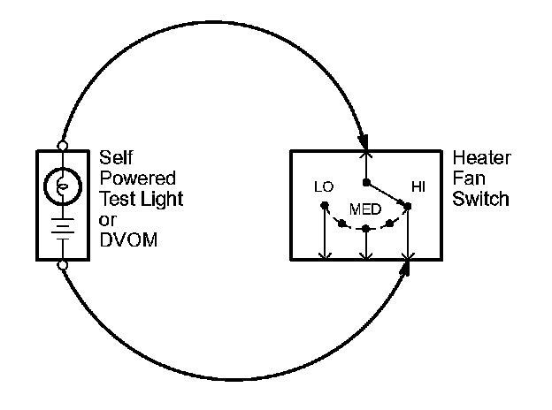 5. If the self-powered test light goes on or the DVOM displays a low reading or no reading (zero), there is a short to ground in the wiring near that point.