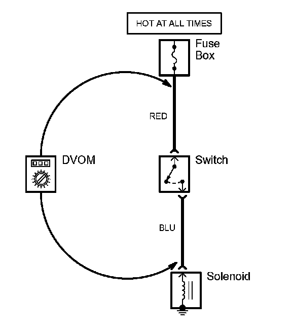 1. Place the digital volt/ohmmeter (DVOM) in the appropriate DC volts range. Connect the positive lead to the end of the wire (or to the connector or switch) closest to the battery.