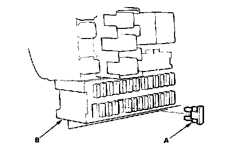 2. Remove the No.18 (7.5 A) fuse (A) from the under-dash fuse/relay box (B) for 60 seconds.