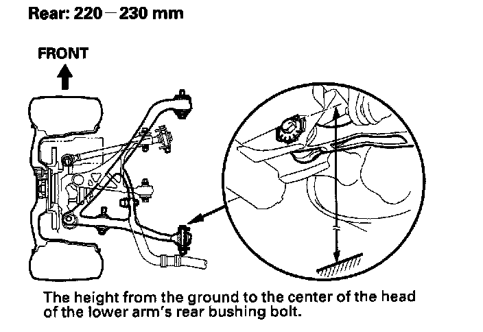 7. Check the height of each suspension. Make sure the vehicle is empty, is parked on a level surface, and has properly inflated tires (the tread wear indicator must not be showing). If the height is out of specification, adjust the load as necessary.