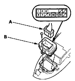2. Disconnect the 13P connector (A) from the power mirror switch (B).