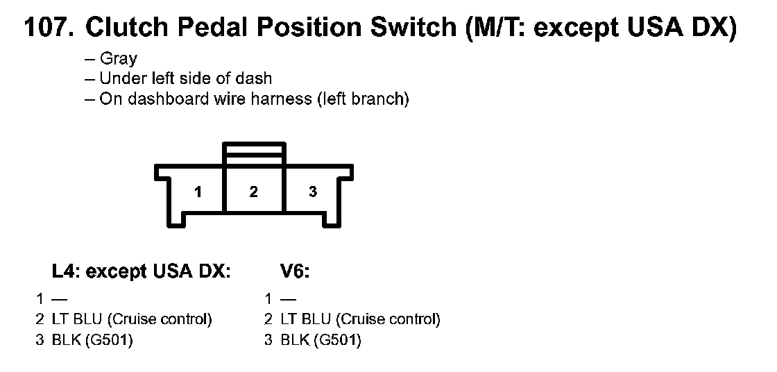107. Clutch Pedal Position Switch (M/T: Except USA DX):
