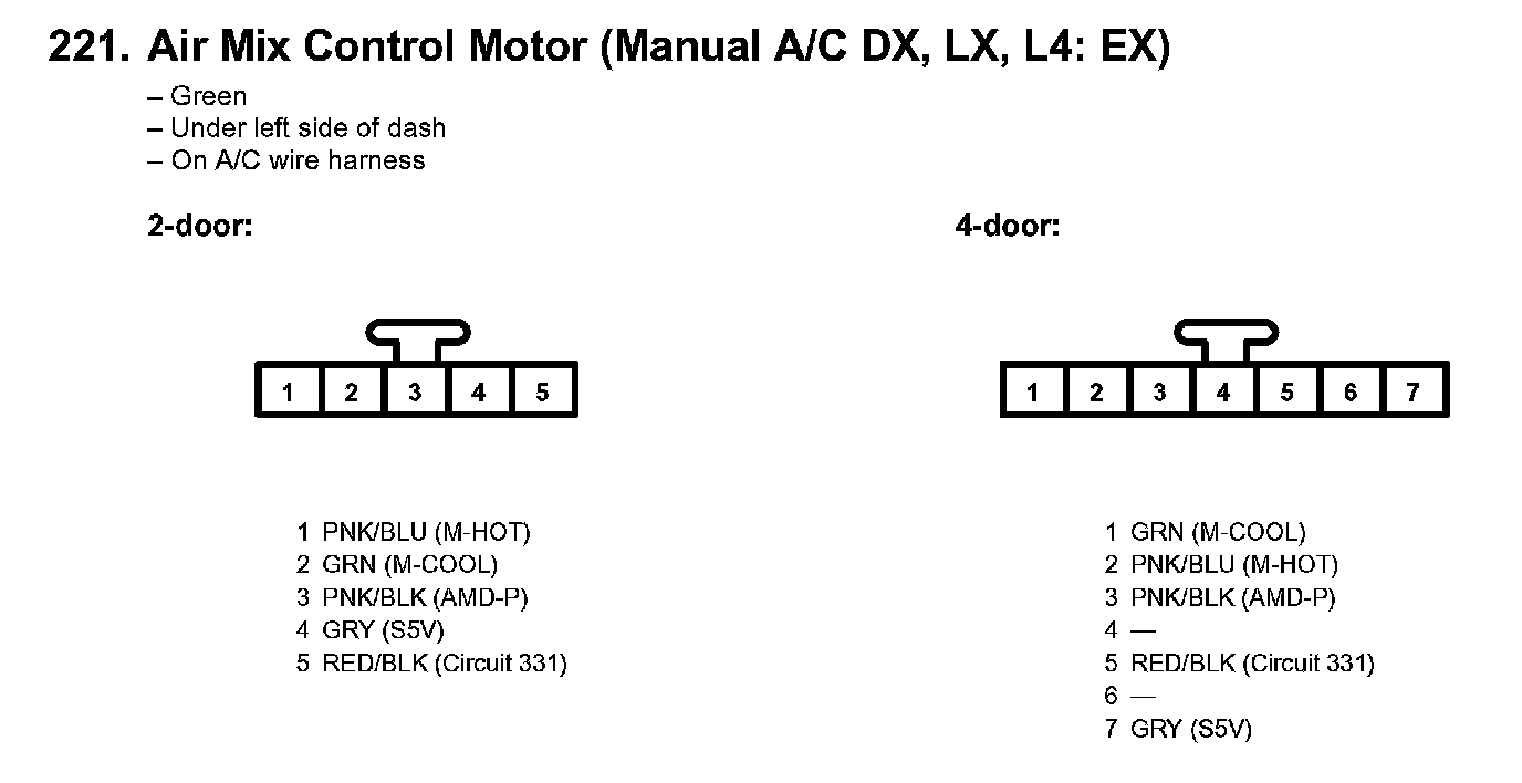 221. Air Mix Control Motor (Manual A/C DX, LX, L4: EX):