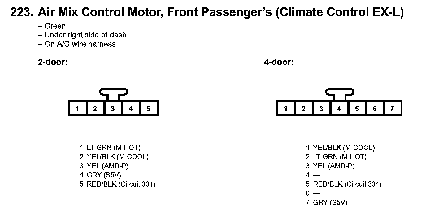 223. Air Mix Control Motor, Front Passenger's (Climate Control EX-L):