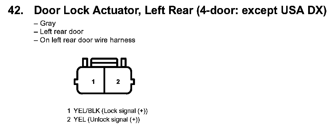 42. Door Lock Actuator, Left Rear (4-door: Except USA DX):
