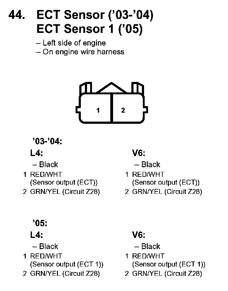 44. ECT Sensor ('03-'04) ECT Sensor 1 ('05):
