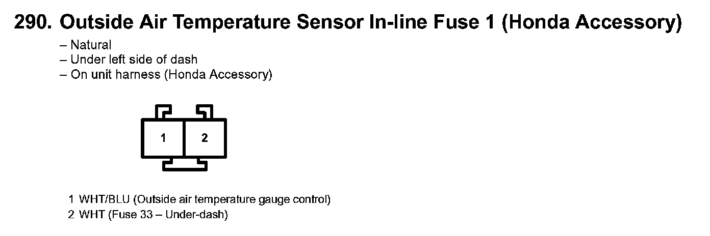 290. Outside Air Temperature Sensor In-line Fuse I (Honda Accessory):