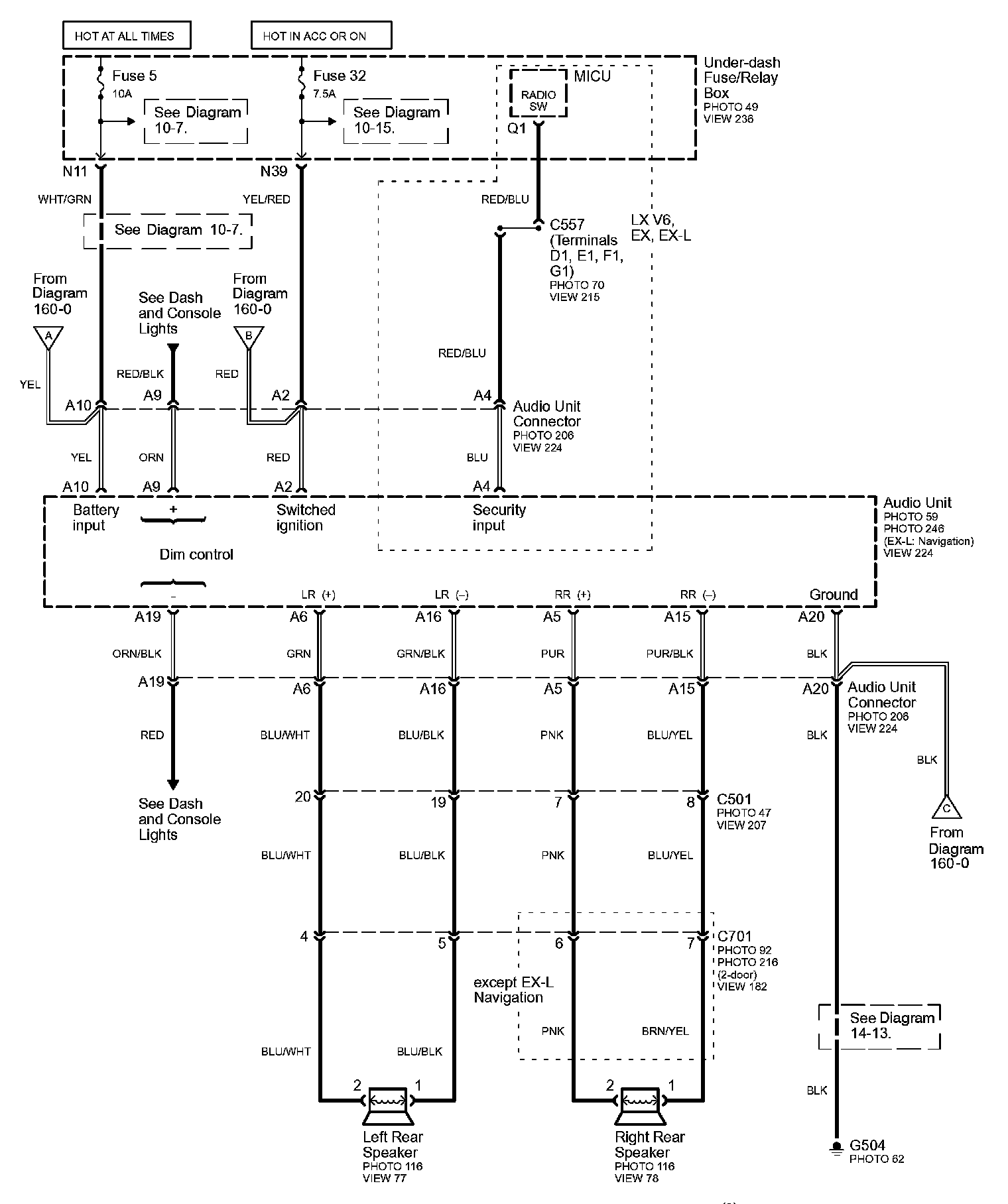 Connector Views: Connector terminal views (references to VIEWS) referred to within these diagrams can be found at Connector Views by View Number. Connector Views By View Number