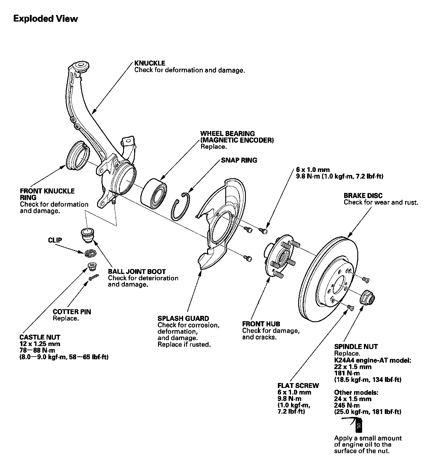 Exploded View - Knuckle/Hub/Wheel Bearing: