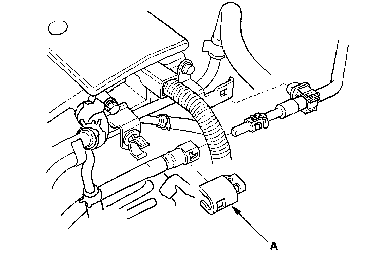 38. 2003-2005 models: Connect the engine wire harness connectors (A), then install the harness clamp (B).
