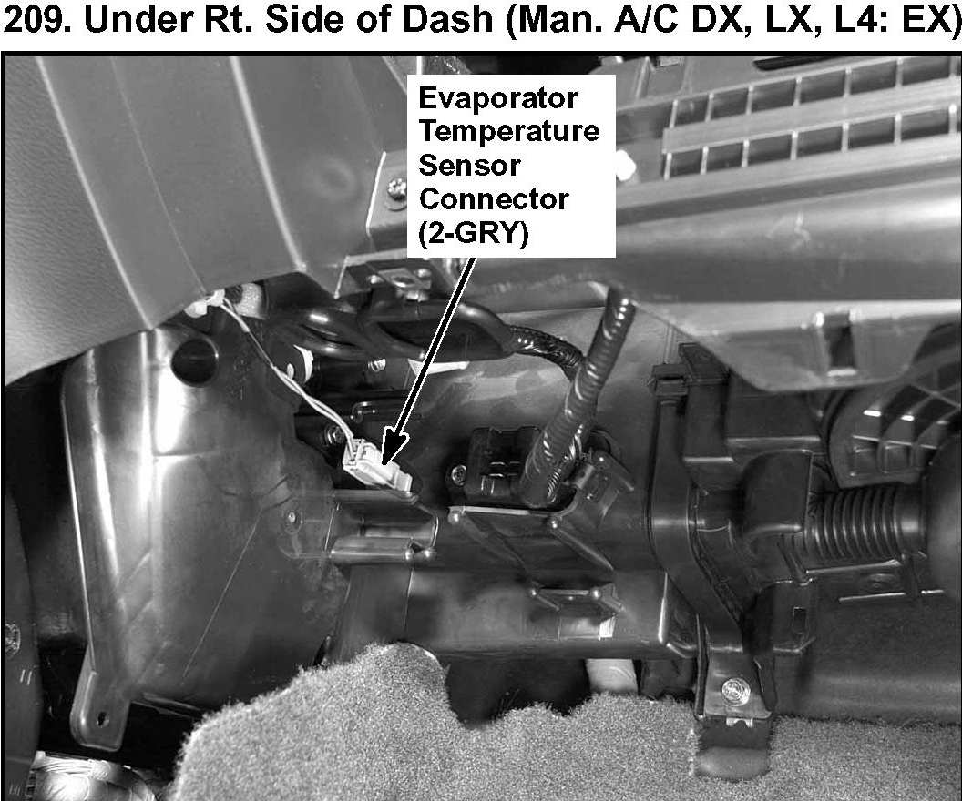209. Under Rt. Side of Dash (Man A/C DX, LX, L4: EX):