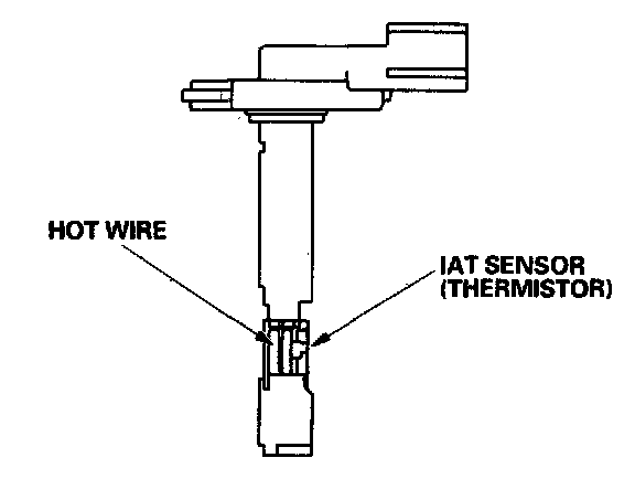 The mass air flow (MAP) sensor contains a hot wire and a thermistor. It is located in the intake air passage. The resistance of the hot wire and thermistor change due to intake air temperature and air flow. The control circuit in the MAF sensor controls the current to keep the hot wire at a set temperature. The current is converted to voltage in the control circuit, then output to the ECM/PCM.
