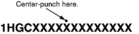 7. Center-punch a completion mark above the ninth character of the engine compartment VIN.