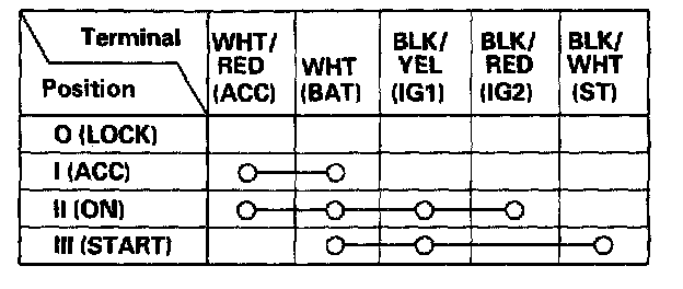 7. If the continuity checks do not agree with the table, replace the steering lock.