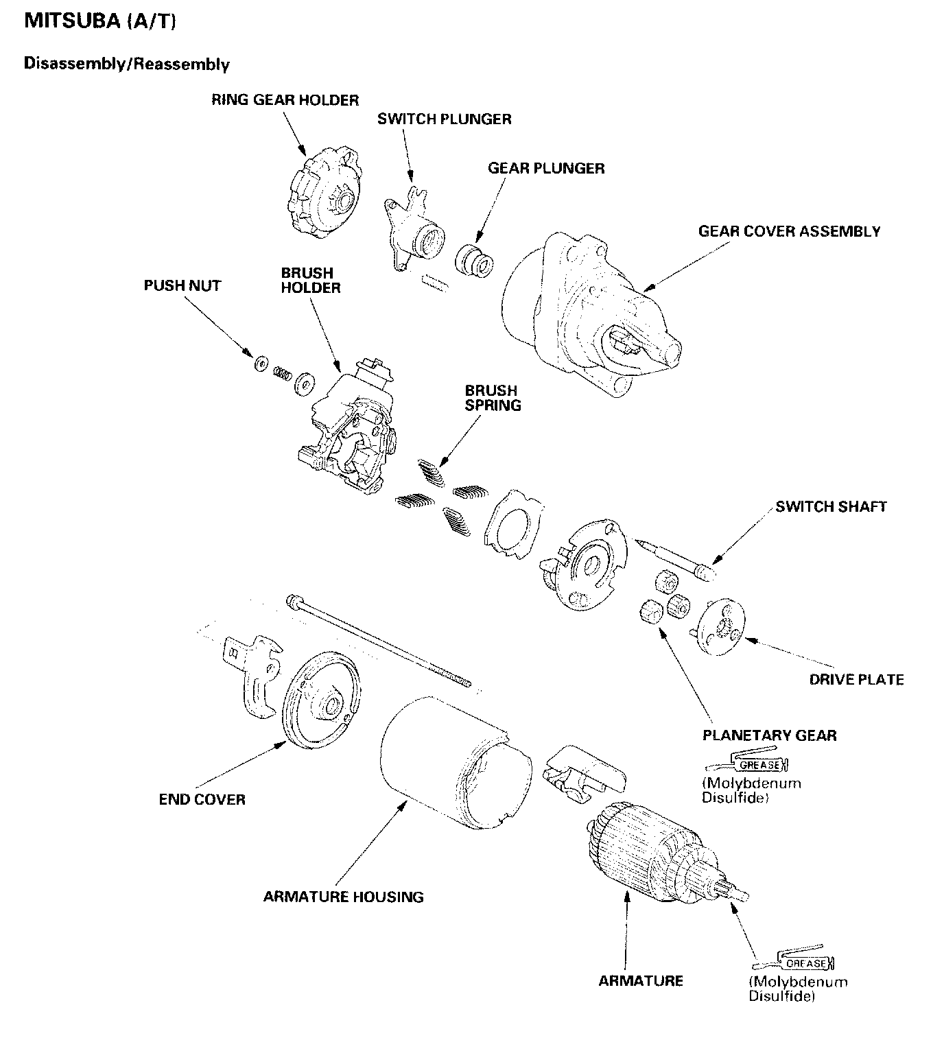 2. Disassemble the starter as shown at the beginning of this procedure.