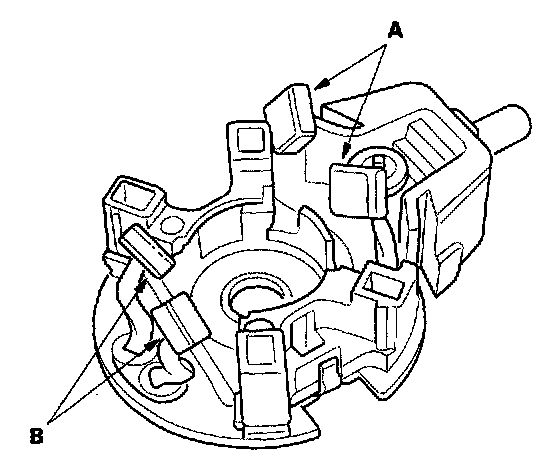 12. Check that there is no continuity between the (+) brush (A) and (-) brush (B). If there is continuity, replace the brush holder assembly.