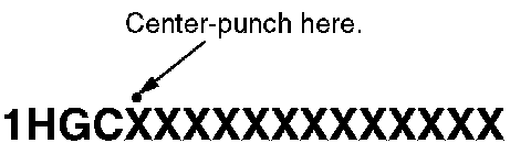 13. Center-punch a completion mark above the fifth character of the engine compartment VIN.