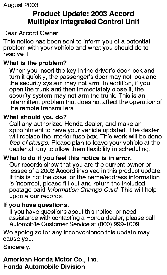 Campaign - Multiplex Integrated Control Unit Replacement