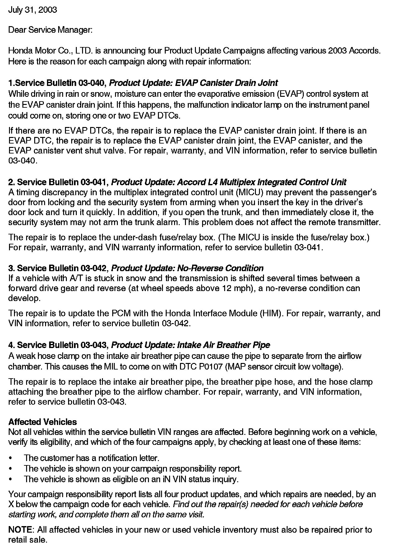 Technical Service Bulletins
