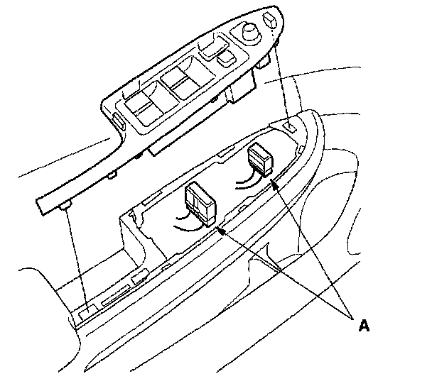 2. Disconnect the power mirror and power window switch connectors (A).