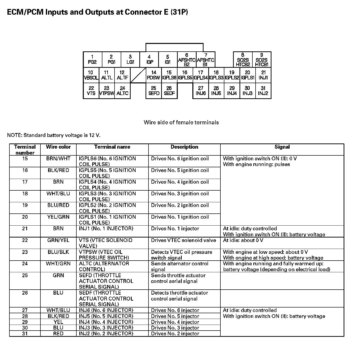 ECM/PCM Inputs And Outputs At Connector E (31P) Part 1:
