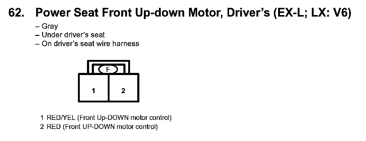 62. Power Seat Front Up-down Motor, Driver's (EX-L; LX: V6):