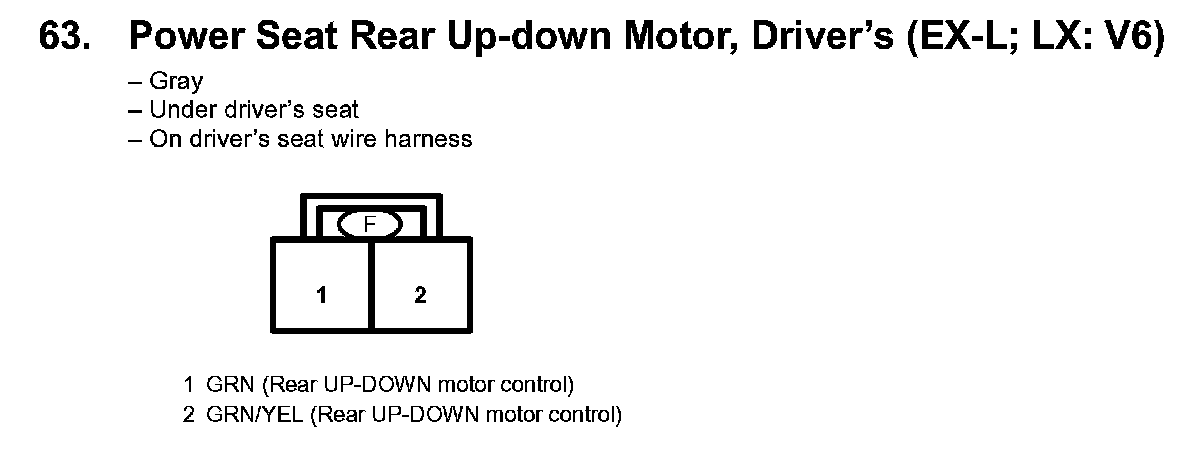 63. Power Seat Rear Up-down Motor, Driver's (EX-L; LX: V6):