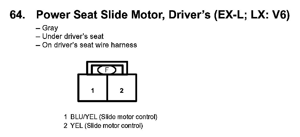 64. Power Seat Slide Motor, Driver's (EX-L; LX: V6):