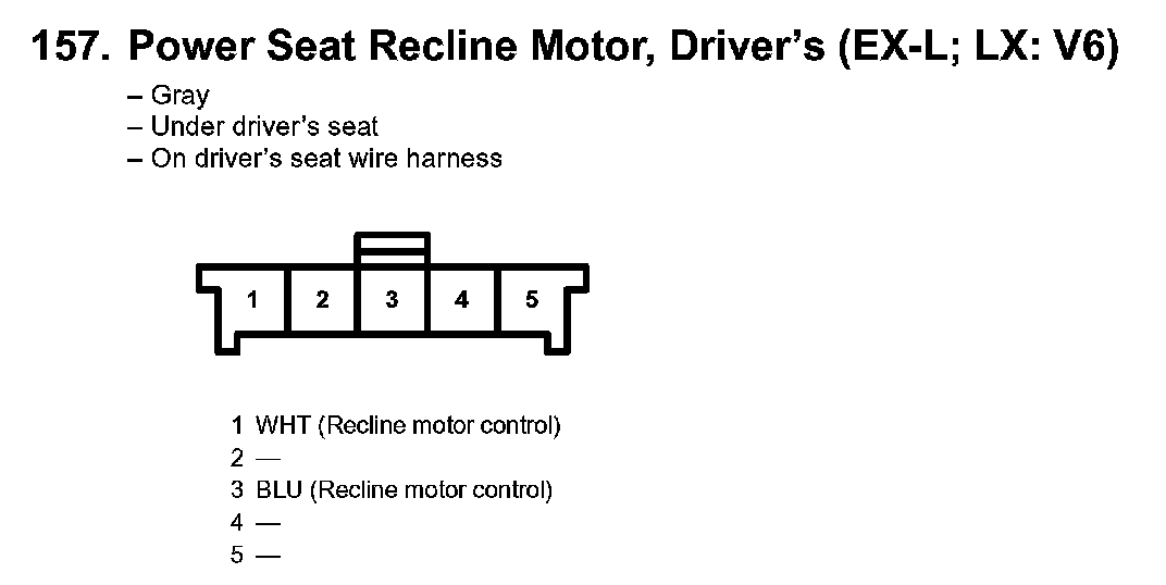 157. Power Seat Recline Motor, Driver's (EX-L; LX: V6):