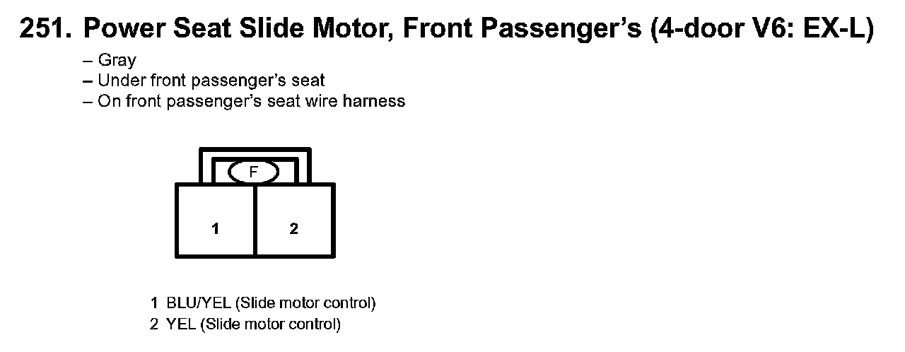 251. Power Seat Slide Motor, Front Passenger's (4-door V6: EX-L):