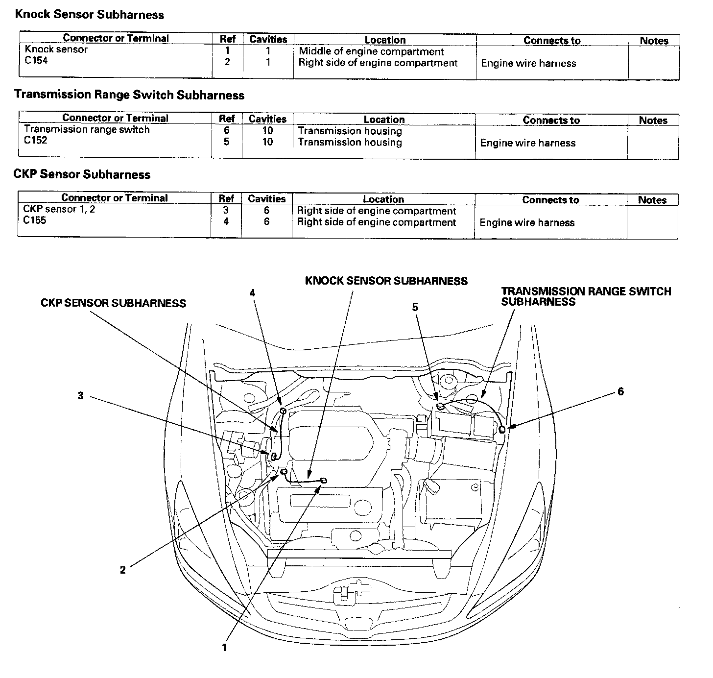 Knock Sensor Subharness/Transmission Range Switch Subharness/CKP Sensor Subharness: