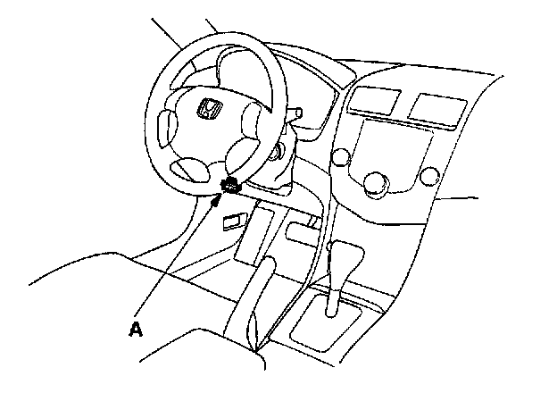 2. If the MIL stays on, connect the HDS to the data link connector (DLC) (A) located under the driver's side of the dashboard.