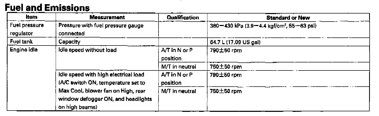 Standards And Service Limits - Fuel And Emissions: