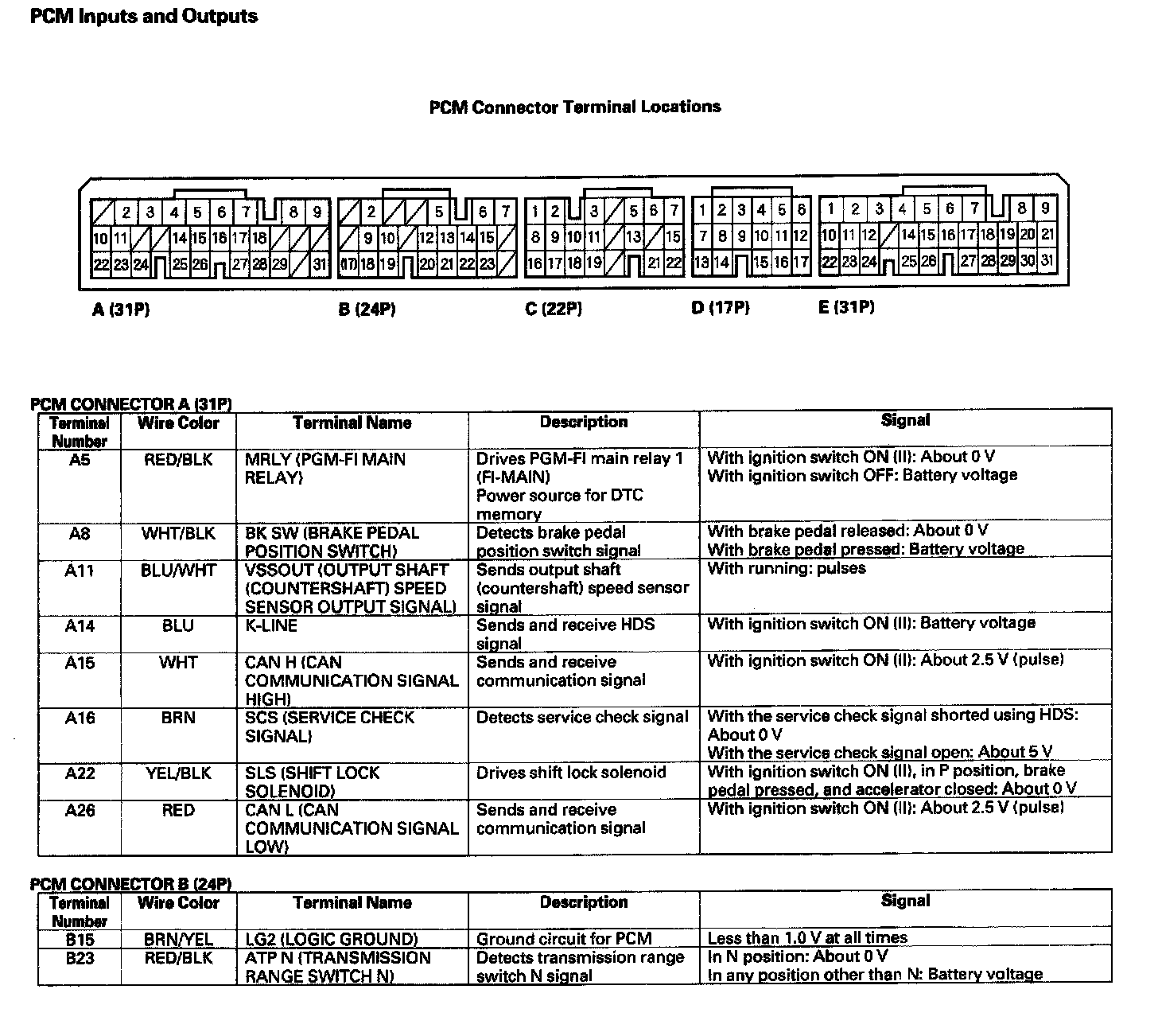 PCM Inputs And Outputs: