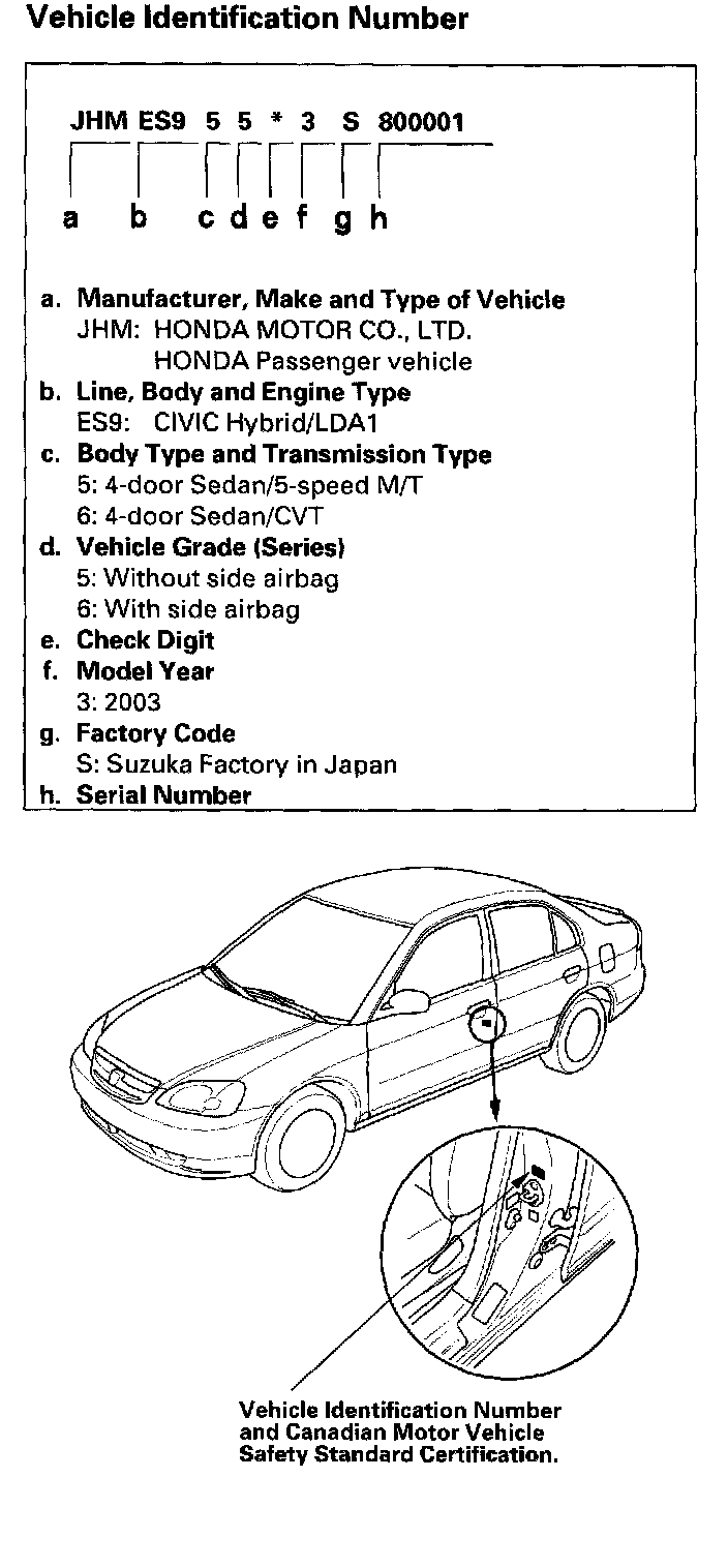 Vehicle Identification Number (Canada Model):