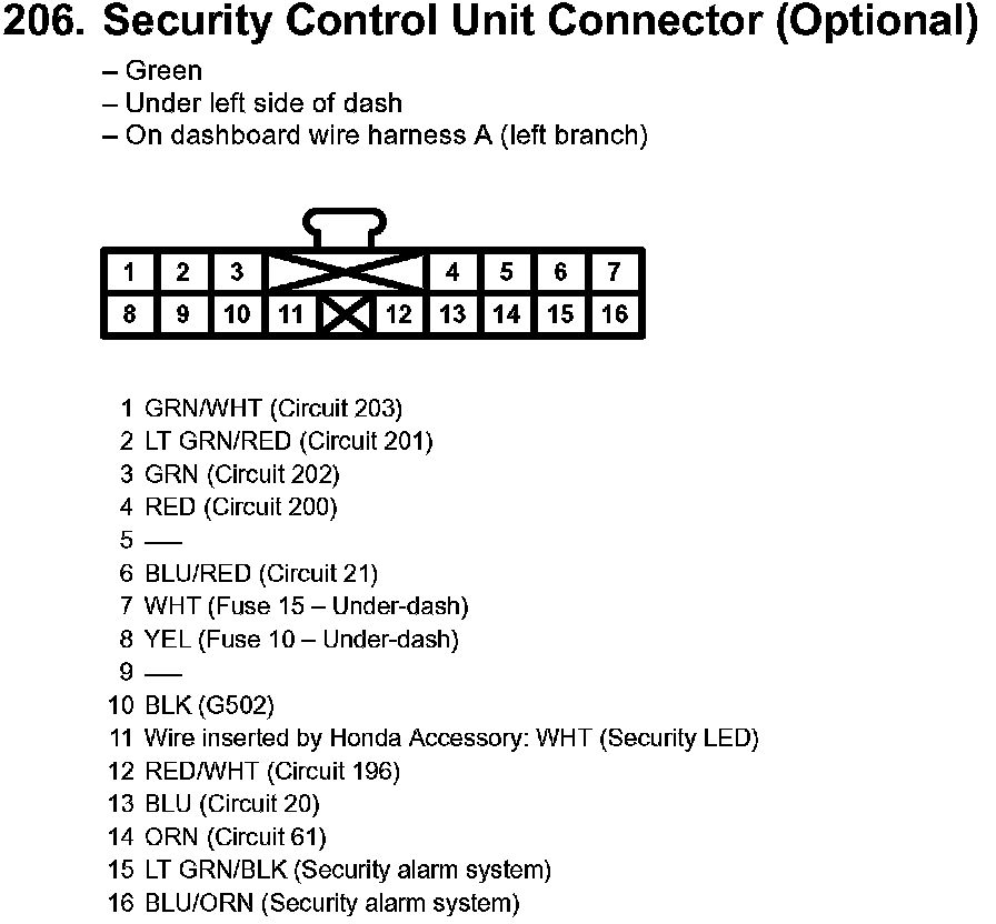 206. Security Control Unit Connector (Optional):