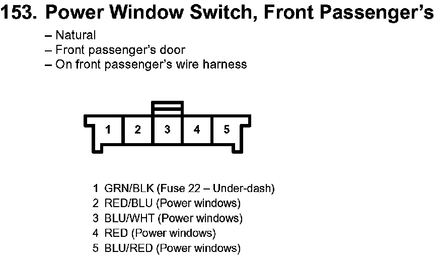 153. Power Window Switch, Front Passenger's: