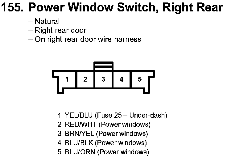 155. Power Window Switch, Right Rear: