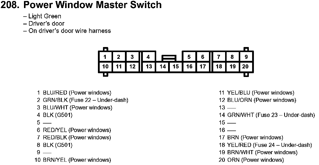 208. Power Window Master Switch: